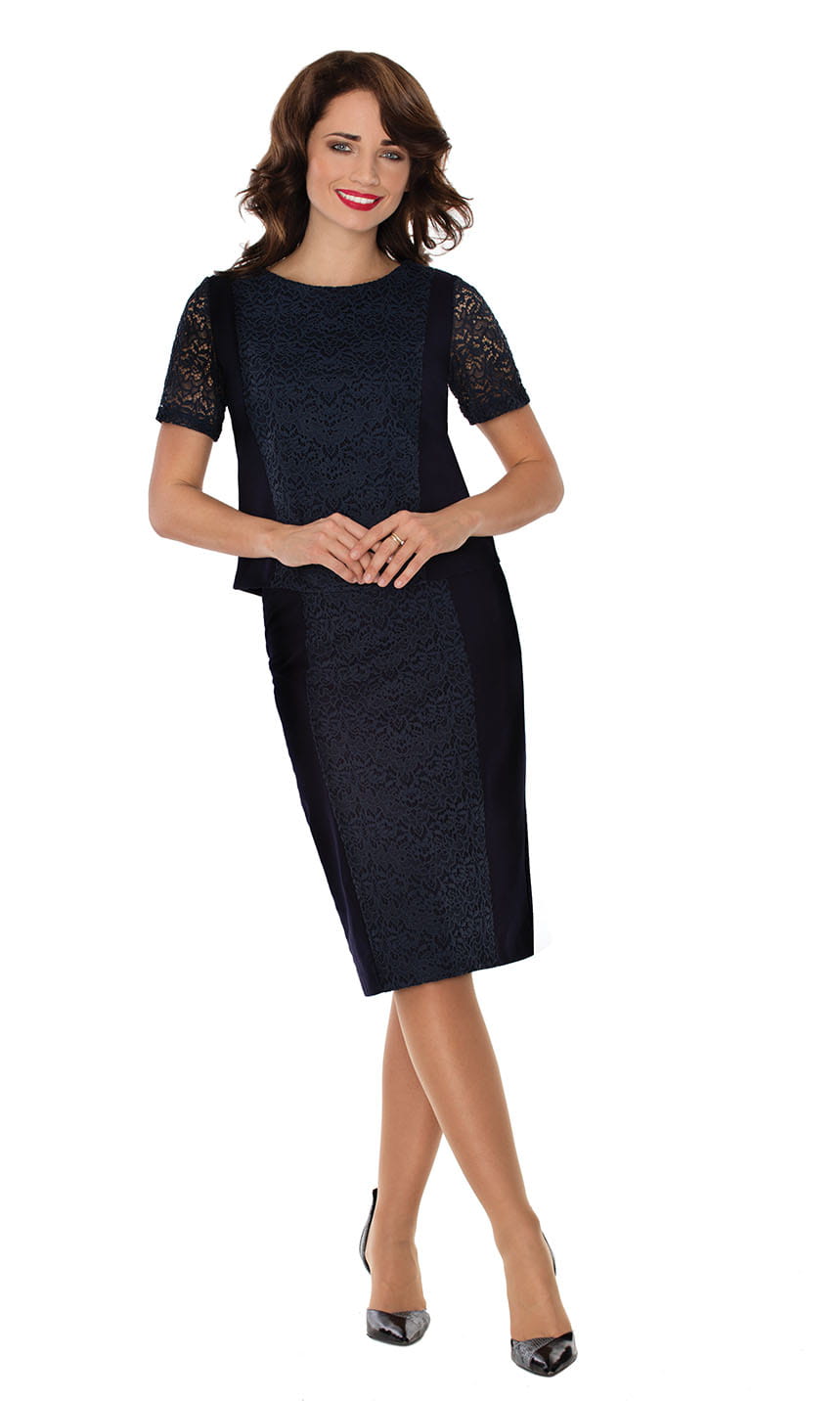 Spódnica damska z koronką za kolano granat